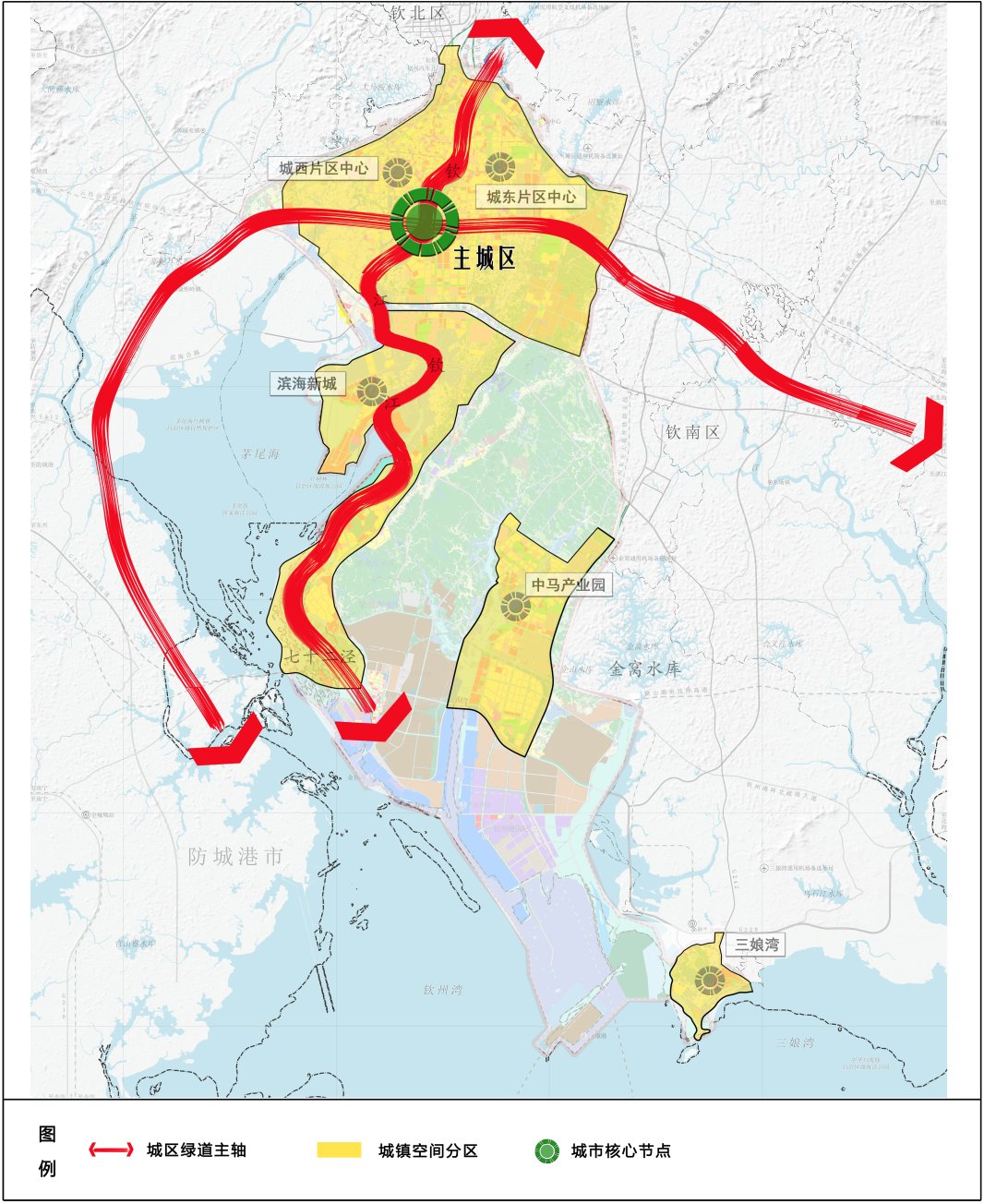 钦州中心城区绿道空间结构图