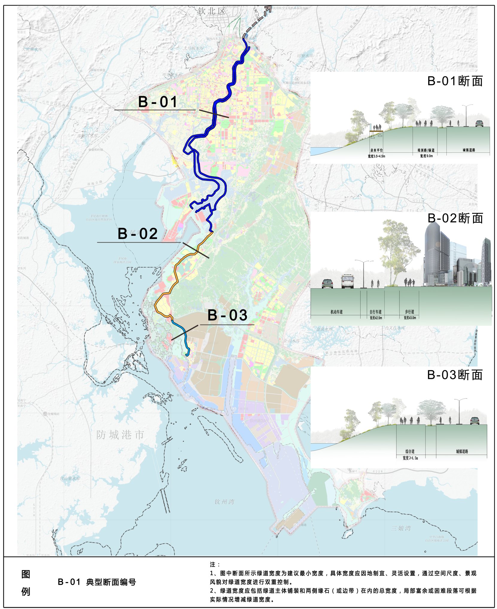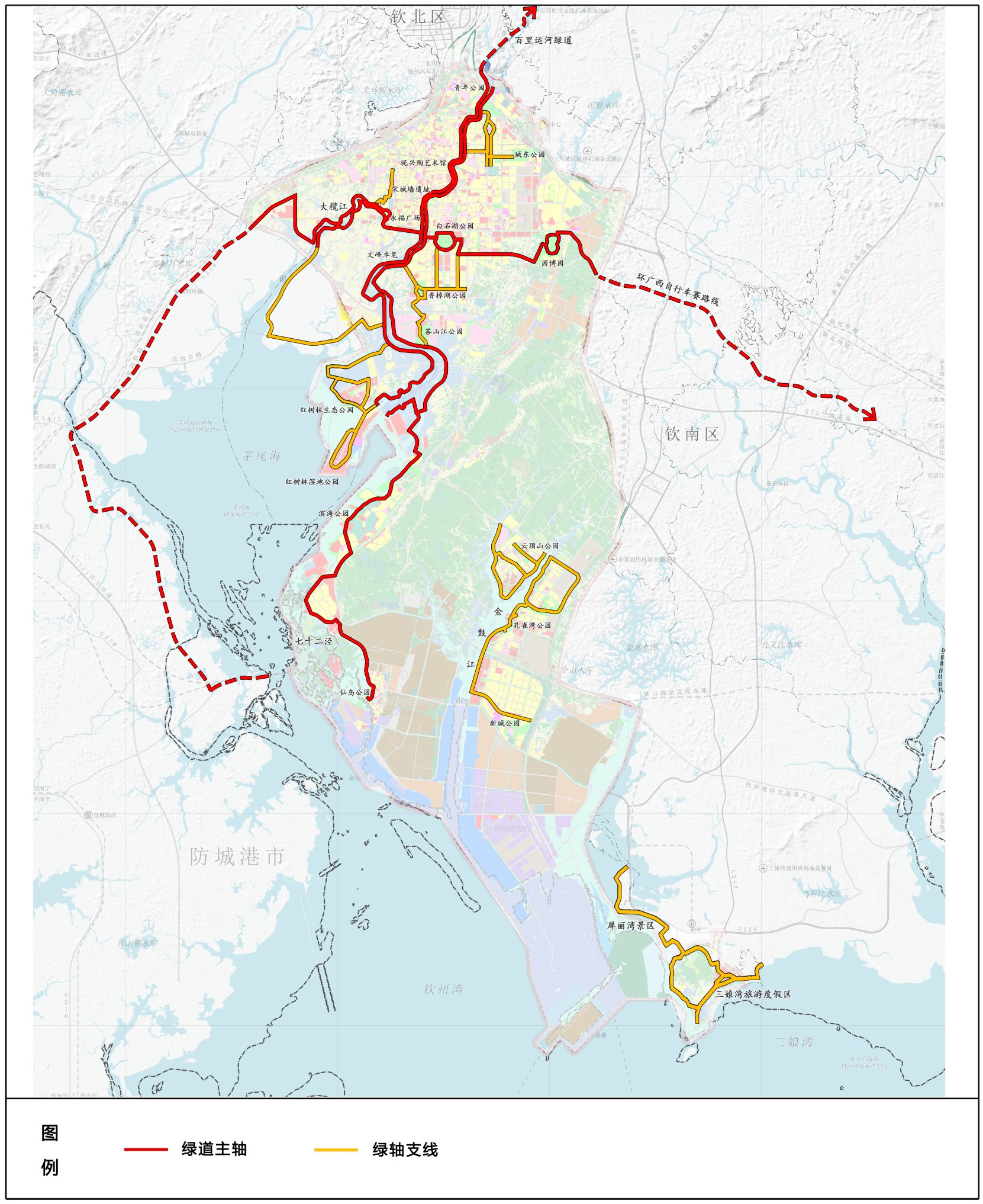 钦州中心城区绿道网络布局规划图