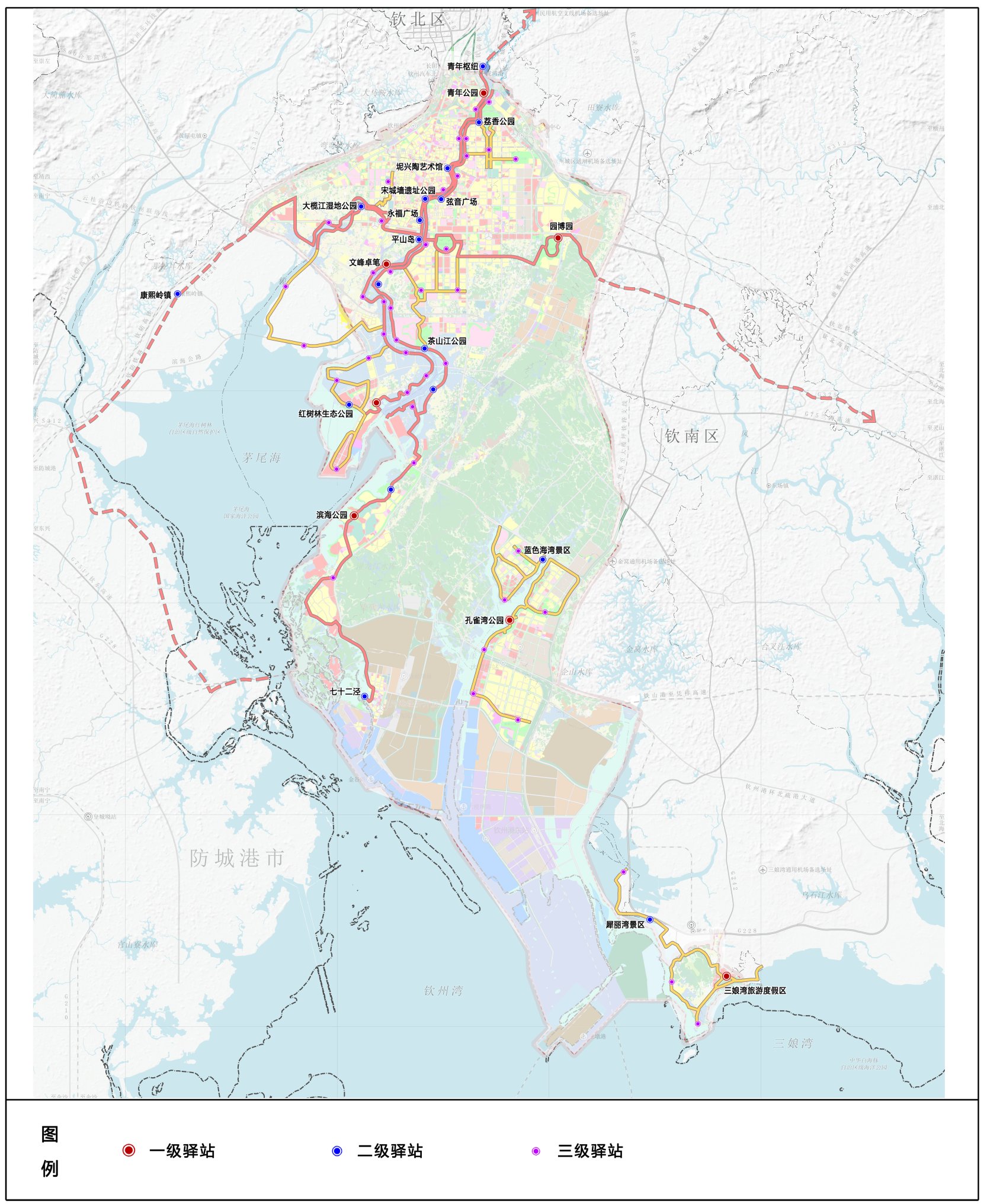 钦州中心城区绿道驿站布局规划图