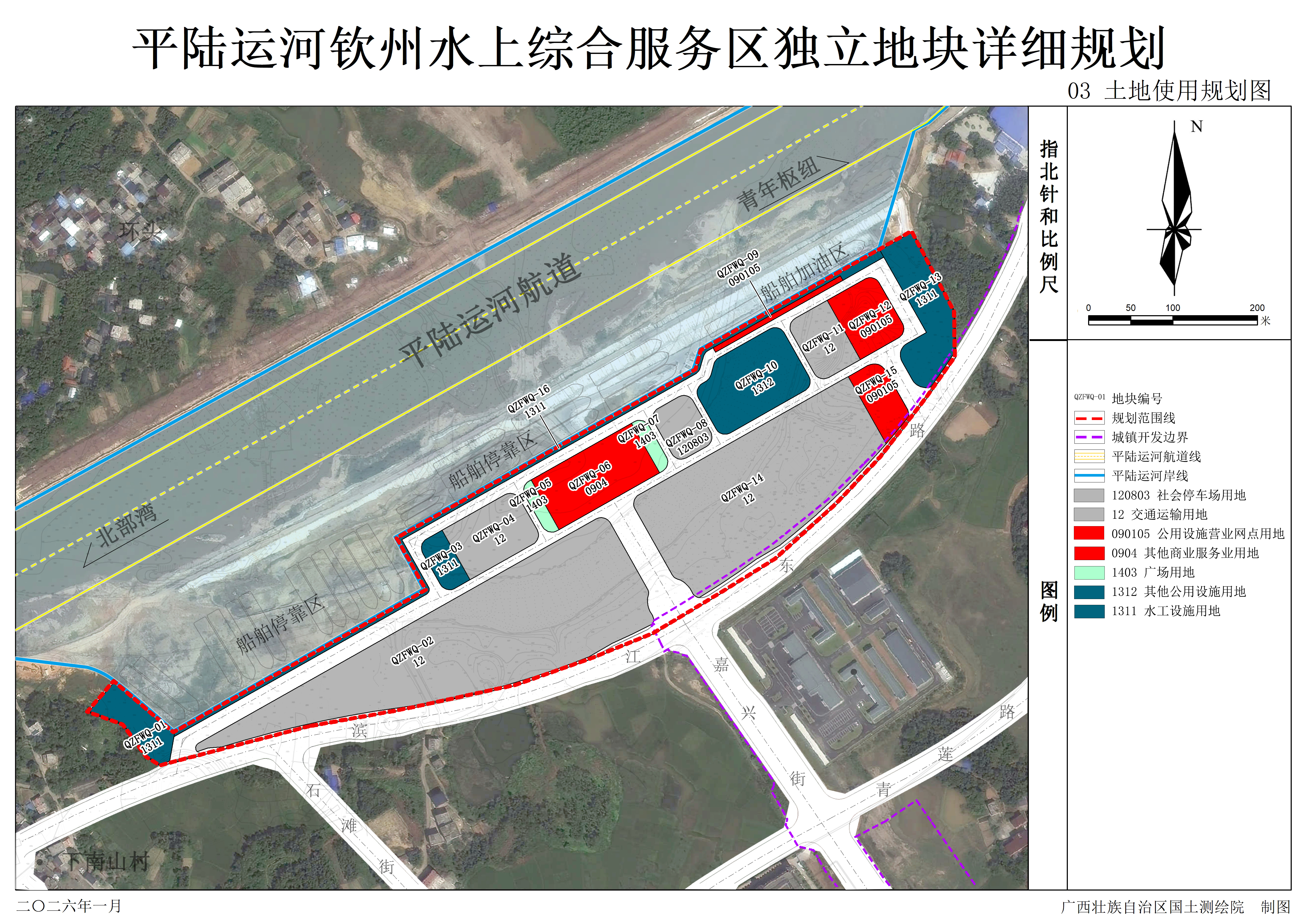 为贯彻落实国家关于建立国土空间规划体系并监督实施的决策部署,作为核发建设项目规划许可、实施国土空间用途管制的重要依据,根据《广西壮族自治区独立地块详细规划编制要点(试行)》及相关规定,《平陆运河钦州水上综合服务区独立地块详细规划》(以下简称《规划》)已编制完成。为提高规划科学性、可实施性,现依法进行《规划》公示,公示期为2026年1月28日至2月28日,共30天。《规划》可在钦州市人民政府网站(http://www.qinzhou.gov.cn/zfxxgk/qzszfxxgkpt/qzszrzyj/fdzdgknr/wsgs/ghgs)进行信息查阅。公示期间,社会各界可通过以下方式反馈书面意见或建议: