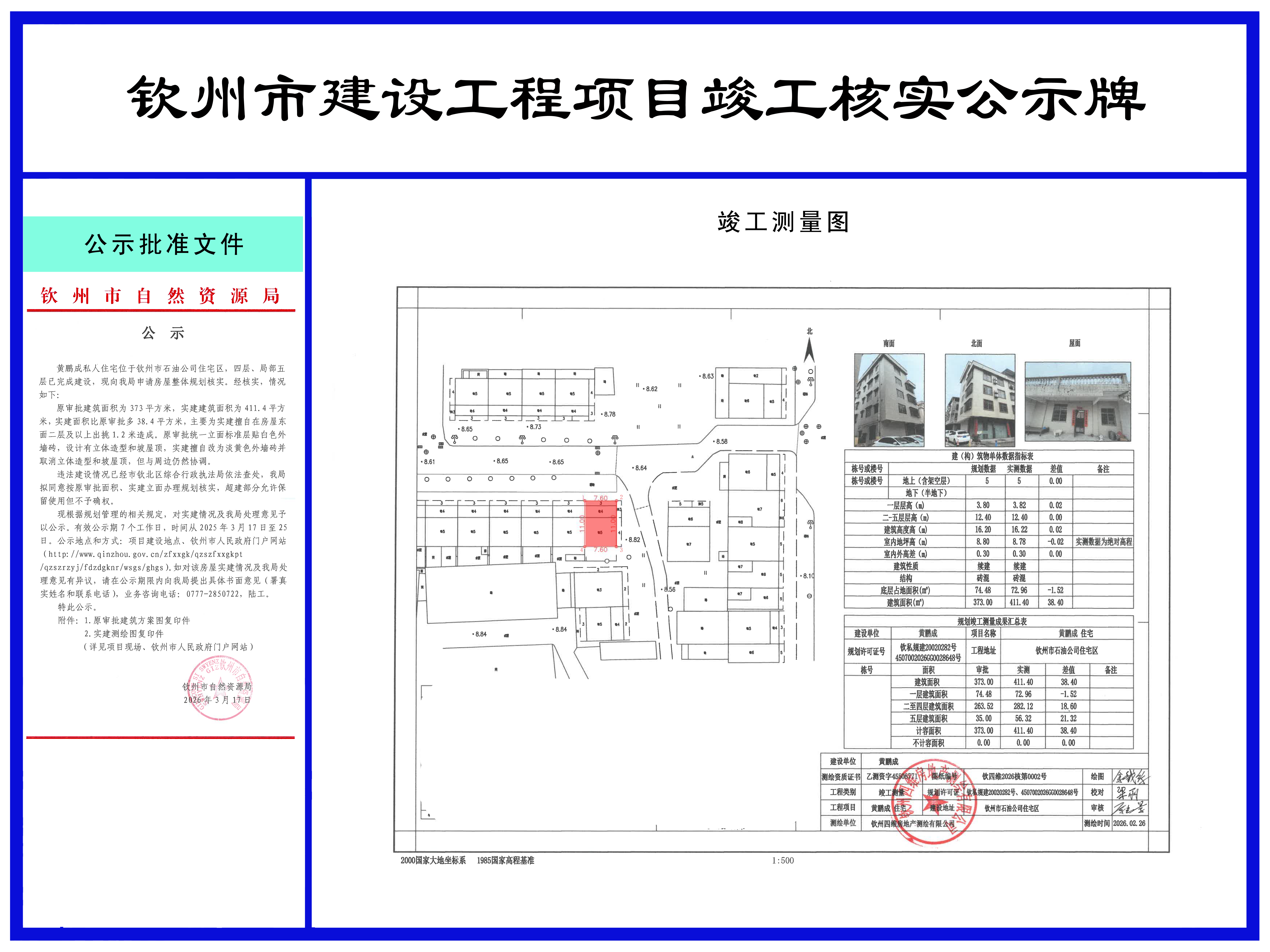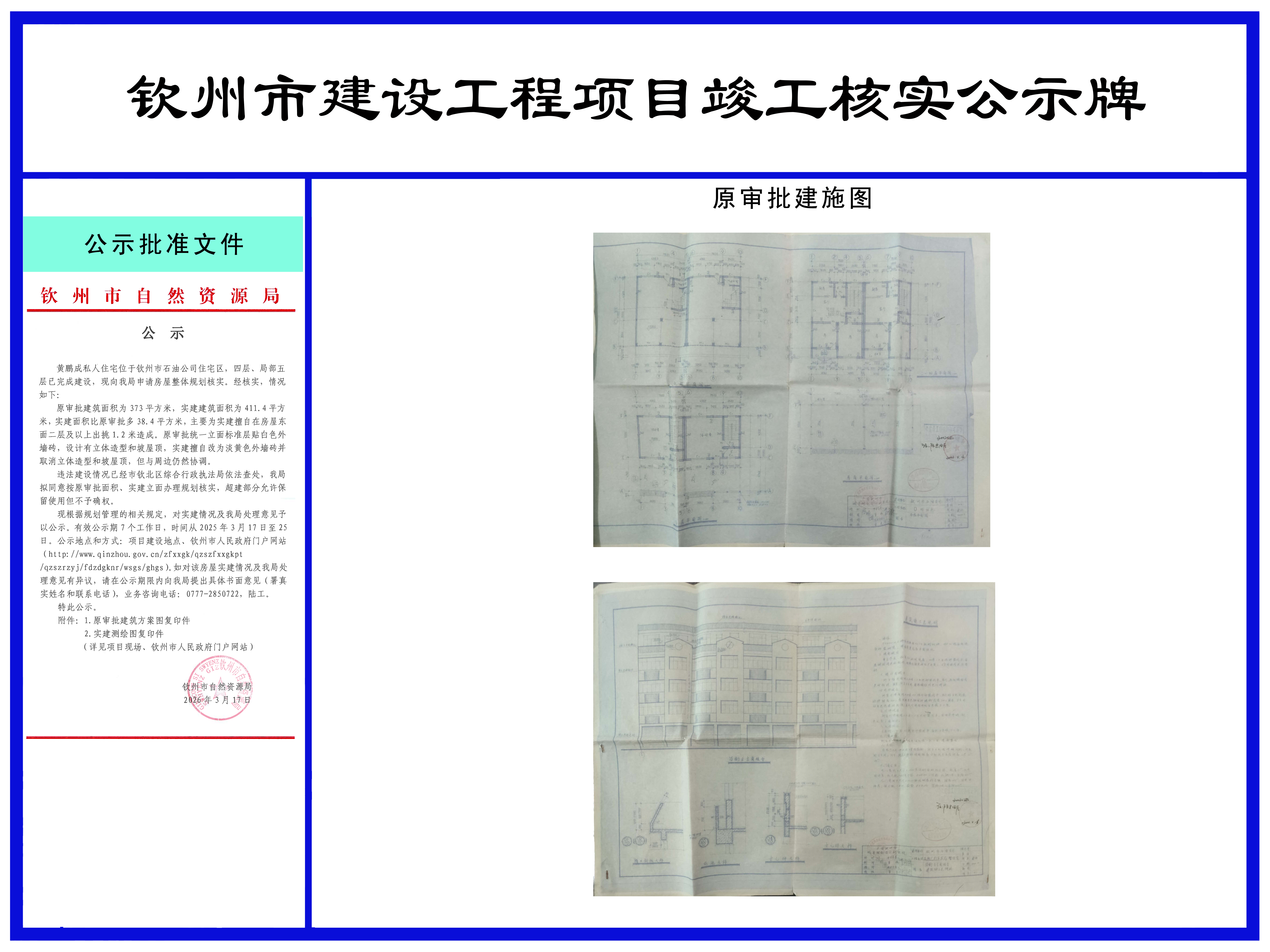 黄鹏成私宅规划核实批前公示