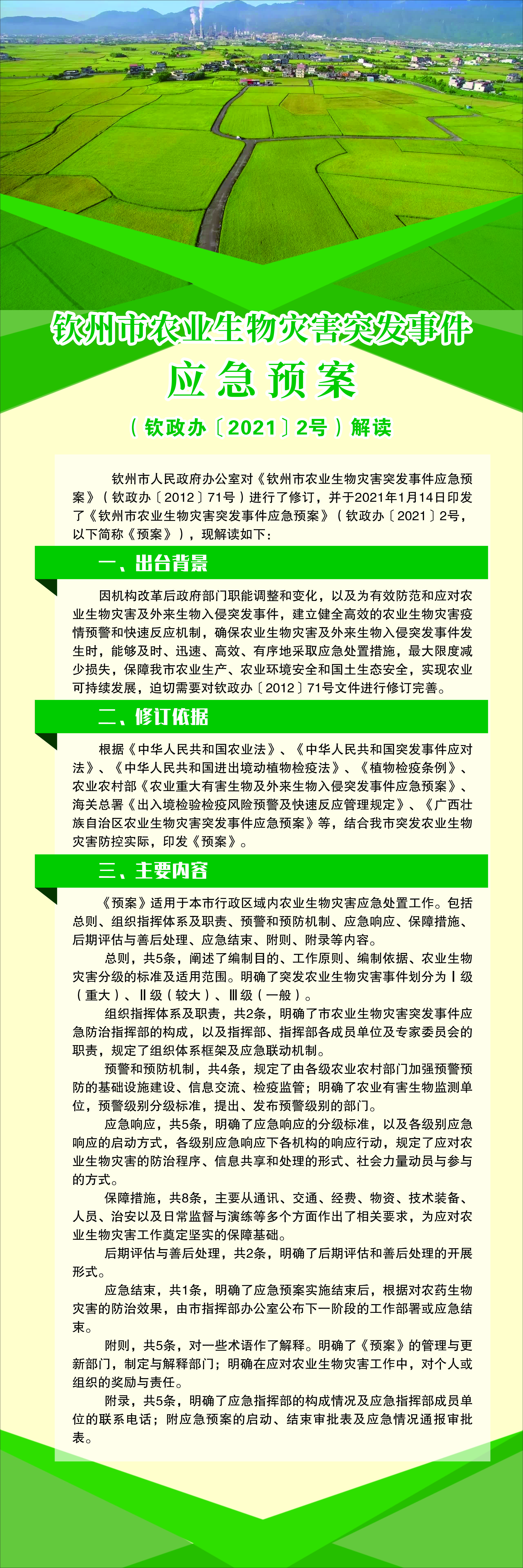 《钦州市农业生物灾害突发事件应急预案》(钦政办〔2021〕2号)解读