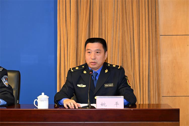 市城管执法局副局长姚平回答提问。谭乃豪 摄