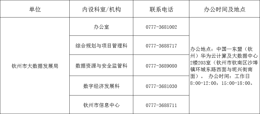 钦州市大数据发展局政策咨询电话