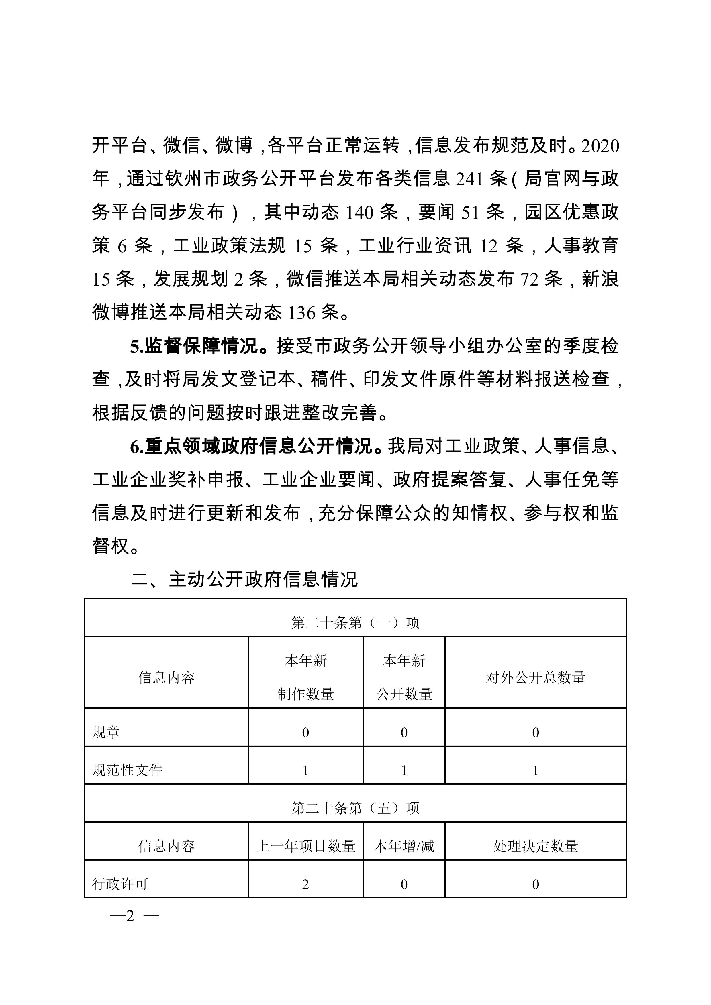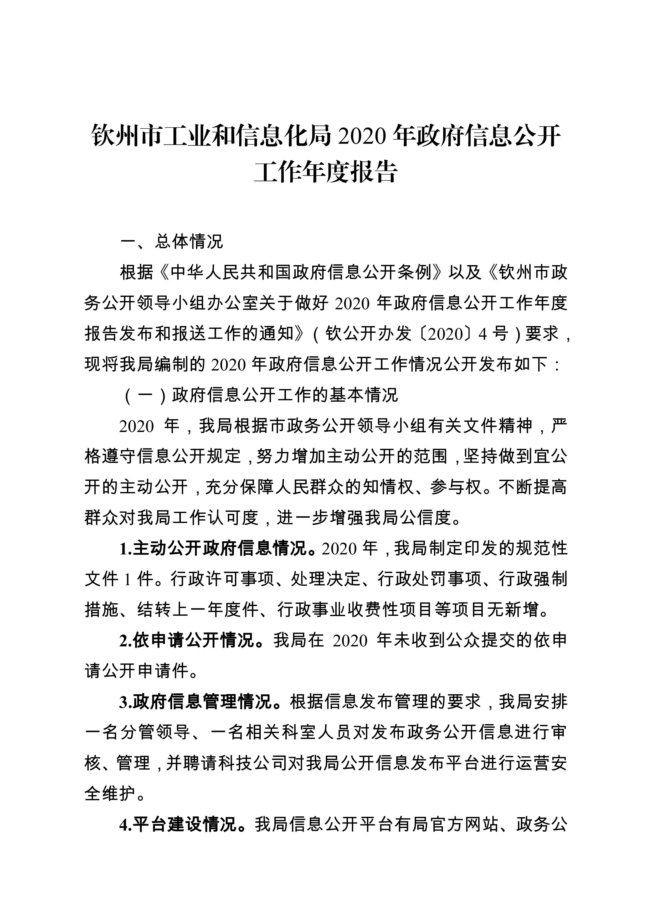 钦州市工业和信息化局2020年政府信息公开工作年度报告