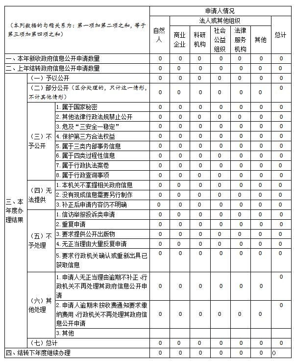 (二)依申请公开情况。2021年我局未收到公民、法人或者其他组织申请公开政府信息。