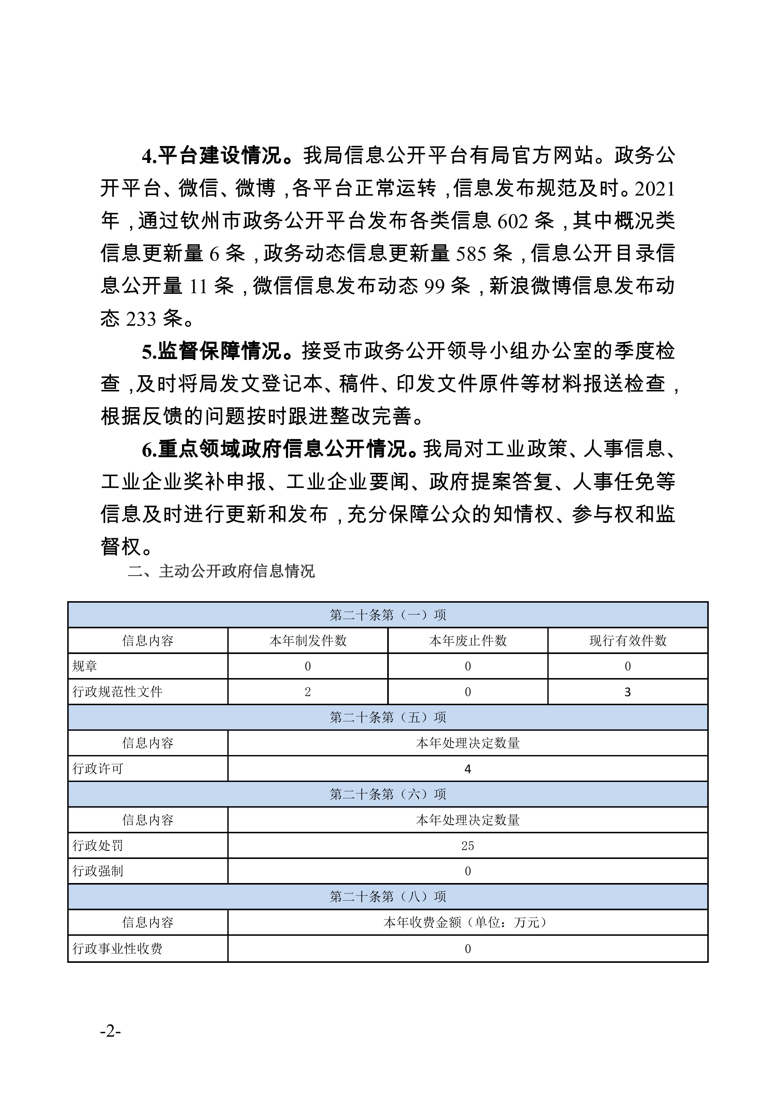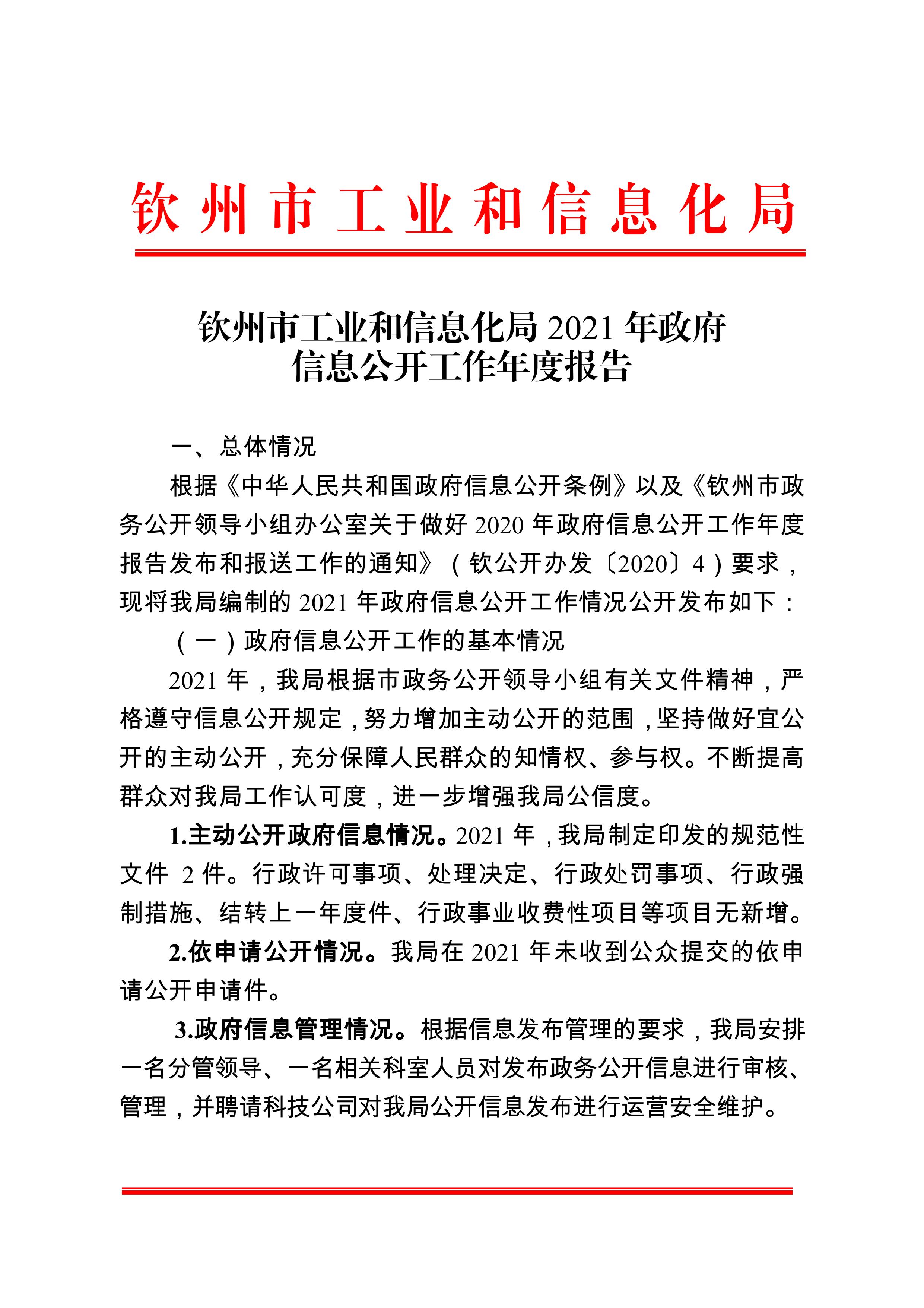 钦州市工业和信息化局2021年政府信息公开工作年度报告