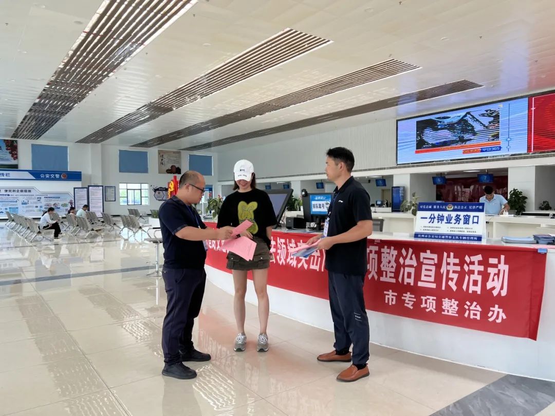 督导组先后到市政务服务中心、市交警二大队黎合江中队、市交警支队车管所等单位实地督导检查。通过听取汇报、查阅资料、现场提问等方式,对各单位开展专项整治宣传工作、动员工作、问题线索排查和整改情况进行全面检查,特别是对照自治区督察反馈的宣传力度不够和工作人员不了解不熟悉专项整治内容等问题整改情况认真检查,现场随机抽查公安交警民辅警、交通运输工作人员对专项整治内容的掌握情况,询问办事群众对专项整治的知晓情况,同时发放专项整治宣传资料开展现场宣传活动。