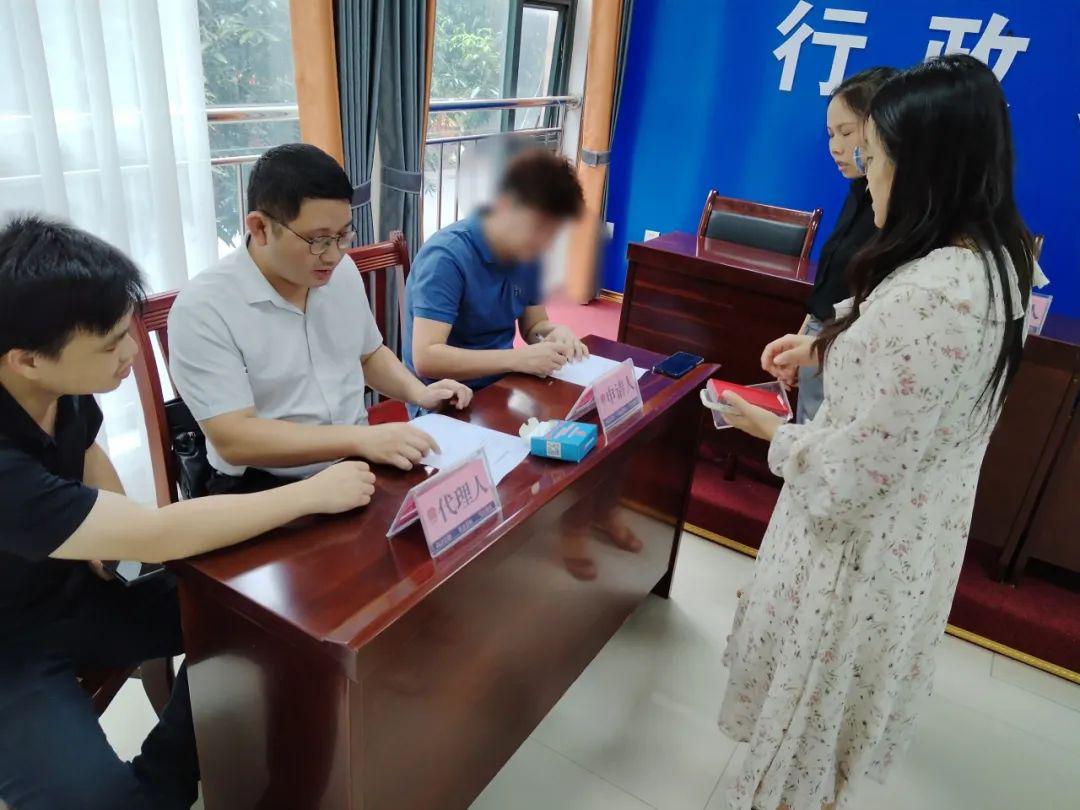听证会结束后主持人顺势召开调解会,为双方搭建争议沟通化解平台。钦州市司法局相关工作人员在听证会前梳理案件,向企业详细了解情况,第一时间对案件进行研判,考虑到企业经营不易,提前制定了调解方案。主持人通过进一步向申请人释法说理,解决了申请人的疑惑,申请人认识到管理过程中存在的错误,并表示接受处罚,当场撤回了复议申请。