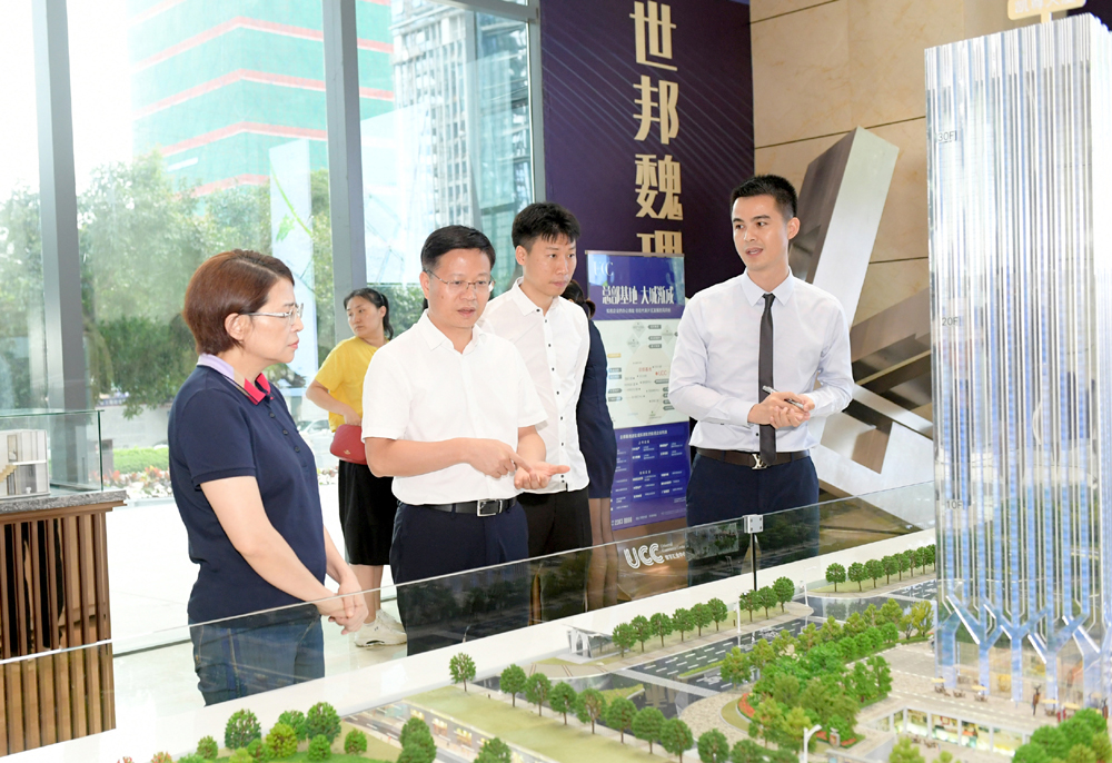 市长谭丕创(前左二)在寰宇汇金中心考察 本报记者 夏玮蔓 摄