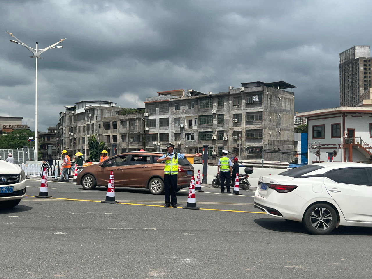 5月21日上午,南珠大街跨江桥(一桥)保通桥按计划开始试运行交通改道。为确保南珠大街跨江桥(一桥)保通桥改道运行期间的交通有序、安全、畅通,钦州市公安局交警支队一大队在支队的指导下,全警动员,周密部署,提前做好各项准备工作,积极开展道路交通秩序安保工作。