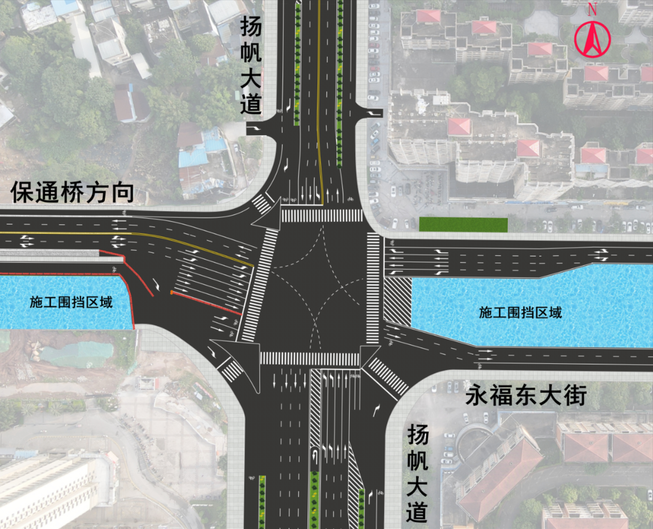 图1. 永福东大街与扬帆大道交叉路口交通组织调整示意图