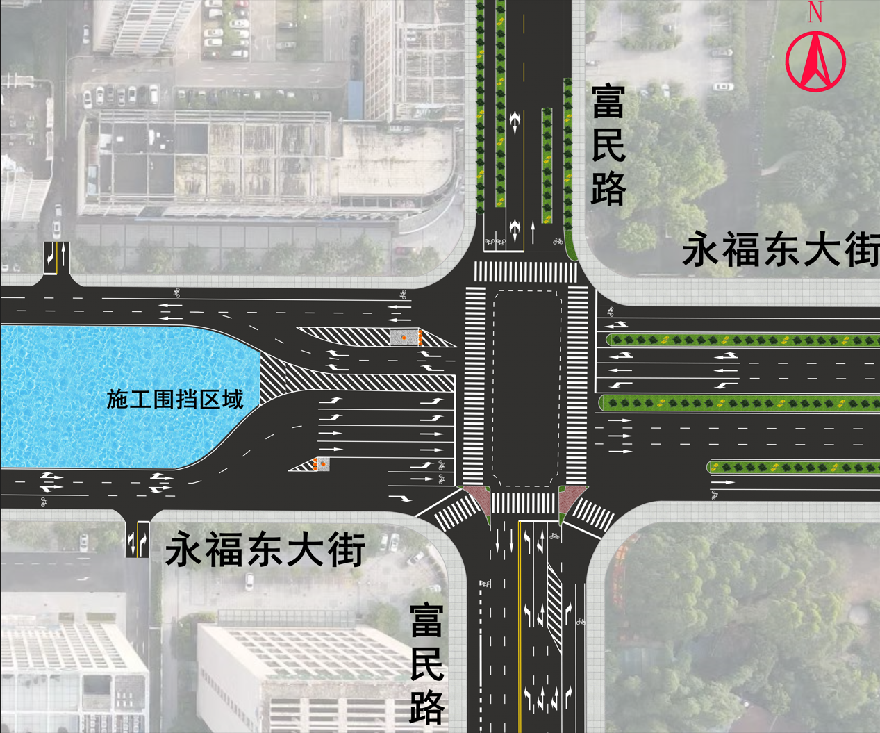 图2. 永福东大街与富民路交叉路口交通组织调整示意图