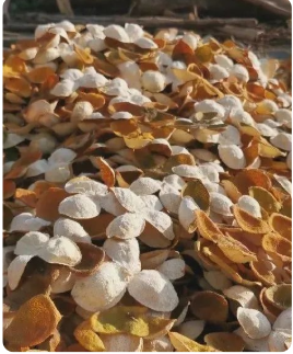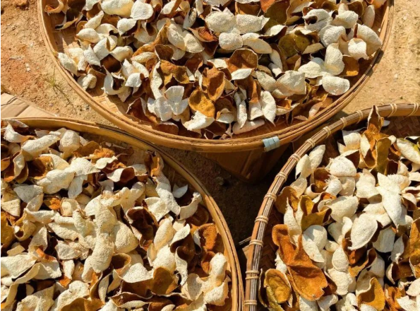 3. 晾干烘干:把新鲜剥下来的果皮晾干后放到炭火上烘干;
