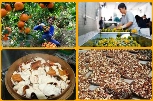 近几年,浦北县龙门镇发展了许多家陈皮制作厂家,产品分药用陈皮和食用陈皮两类,药用陈皮易于保存,食用陈皮多用于泡茶或者加工成柑普茶。陈皮已经成为了浦北县的特色美食名片。