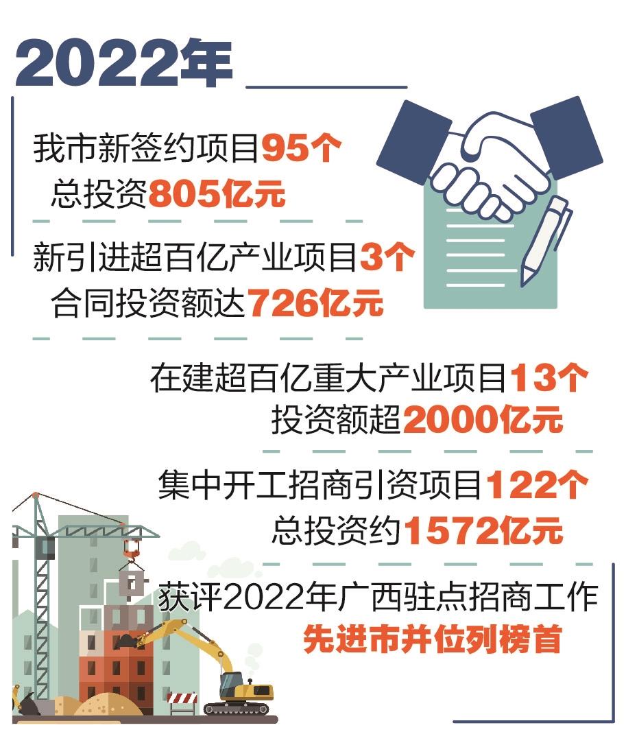 我市始终释放“向海而兴、提质扩量”的强烈信号,主动走出去、热情请进来,吸引大项目纷至沓来,为发展积蓄强大动力。去年,全市9支常态化驻点招商工作队分赴粤港澳大湾区、长江经济带、京津冀等重点区域开展驻点招商,对接拜访企业2871家,邀请来钦考察企业1181家,成功新签约项目95个、总投资805亿元,其中制造业项目总投资575亿元。
