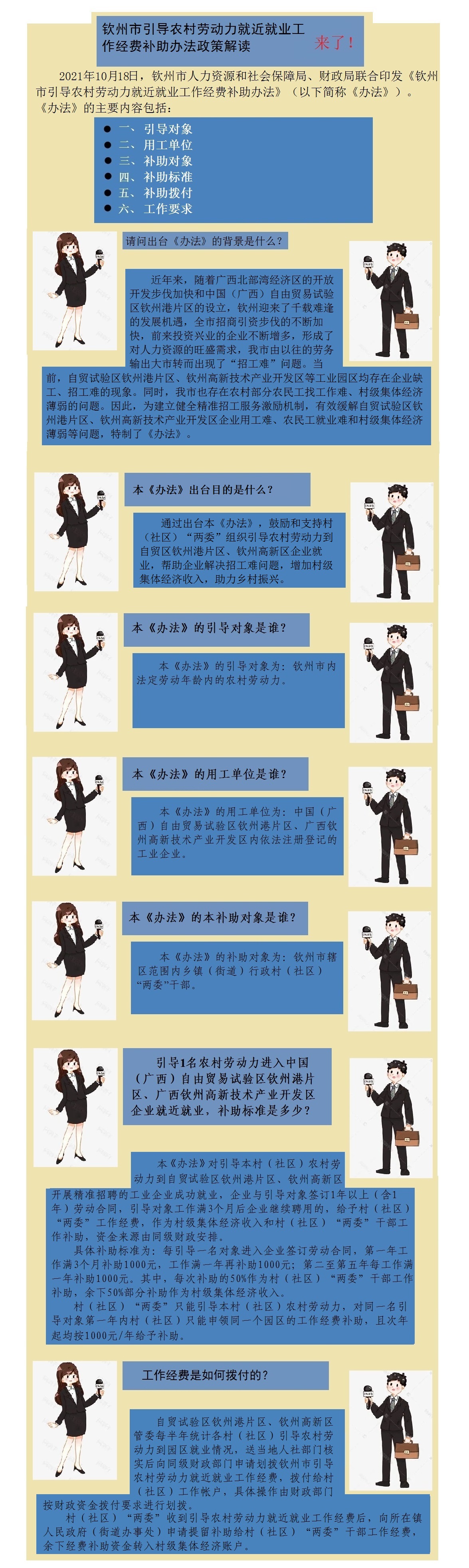 图解:《钦州市人力资源和社会保障局 钦州市财政局关于印发钦州市引导农村劳动力就近就业工作经费补助办法的通知》(钦人社规〔2021〕1号)政策解读